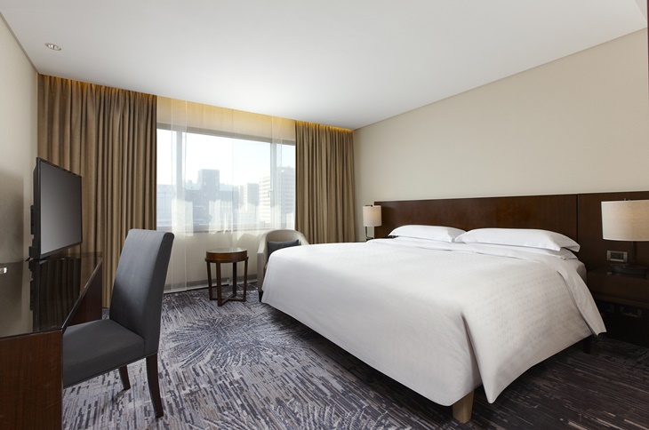 來到台北喜來登大飯店,飯店的用心是您絕對能感受到的!舒適客房以簡約沉穩為主調,搭配上雅致家具、溫潤木作與摩登新穎的織品地毯延伸整體格局,營造出尊貴典雅的品味!同時將都會的喧囂隔絕於外,身心靈得以獲得沉澱的最佳機會,讓您住得舒適、放鬆享受!