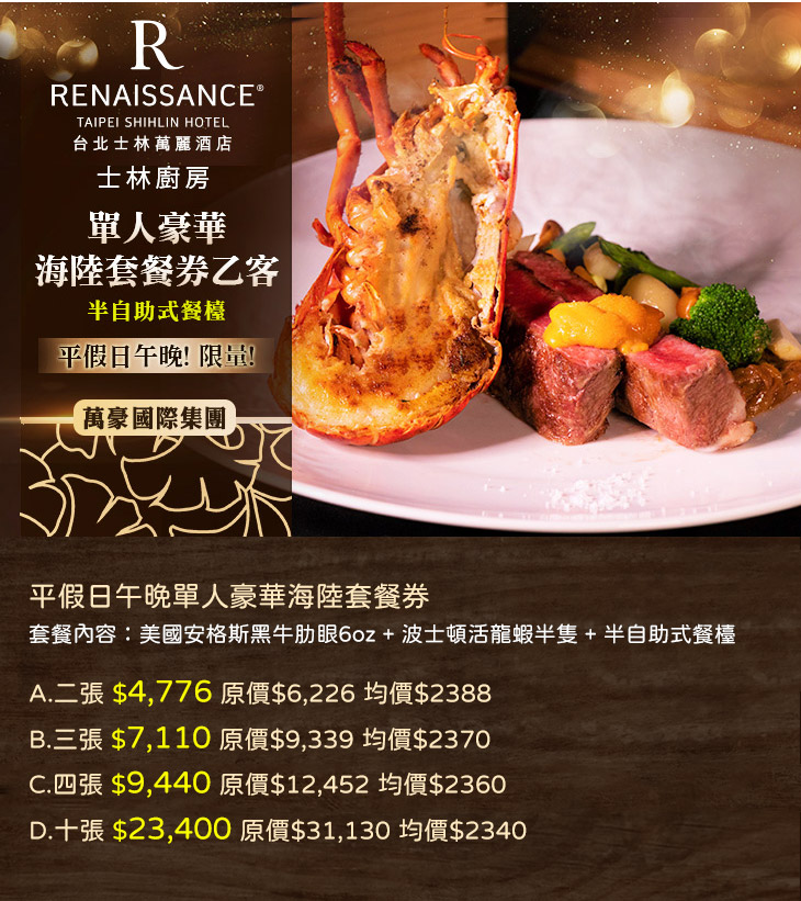 限量! 士林廚房平假日午晚單人豪華海陸套餐券乙客