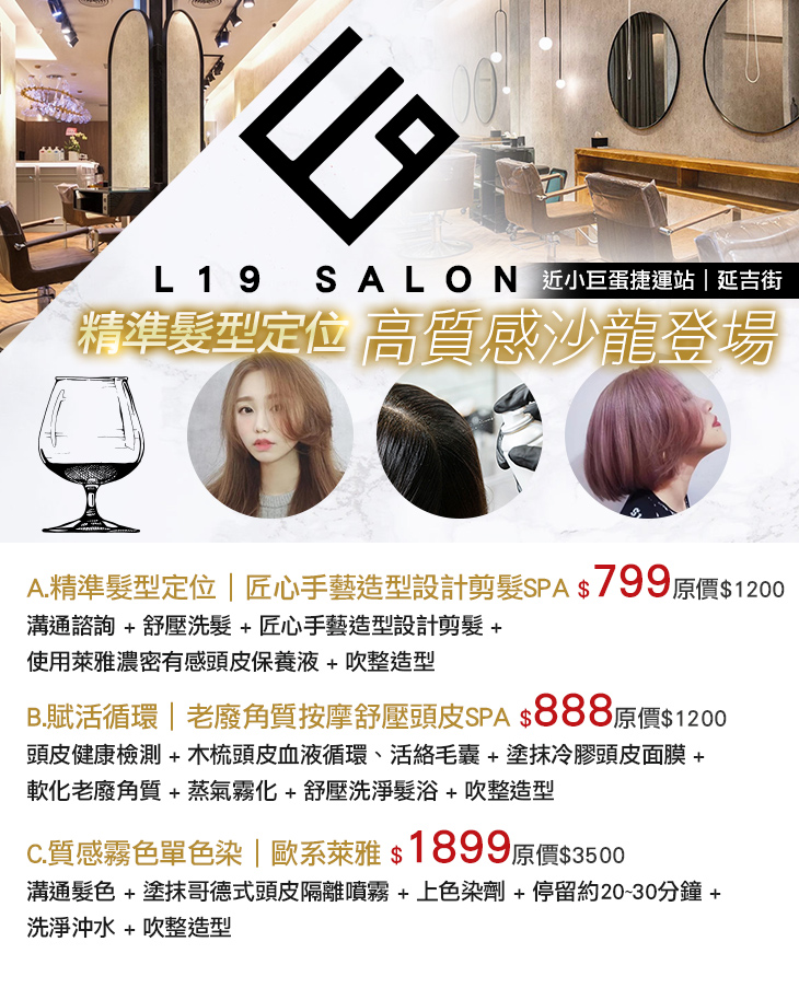 【L19 salon】位於繁華的松山區,靠近小巨蛋,是許多台北潮人變髮的第一選擇。鬧中取靜的環境,在人來人往的都心中以沉穩、質感的裝潢勾勒出氣氛舒適又Chill的美學空間,讓您可以舒服又自在地享受美髮過程。