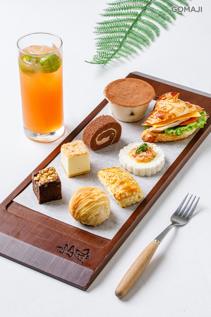主廚精心搭配的點心組合,有甜、有鹹,每一樣都十分精巧,並獨具風味,美味各有千秋!當您品味完又鬆又軟、甜而不膩的西式蛋糕,可以再來一口麻雀雖小、五臟俱全,料多實在的小可頌三明治,多變的口感享受,讓人怎麼吃都吃不膩!