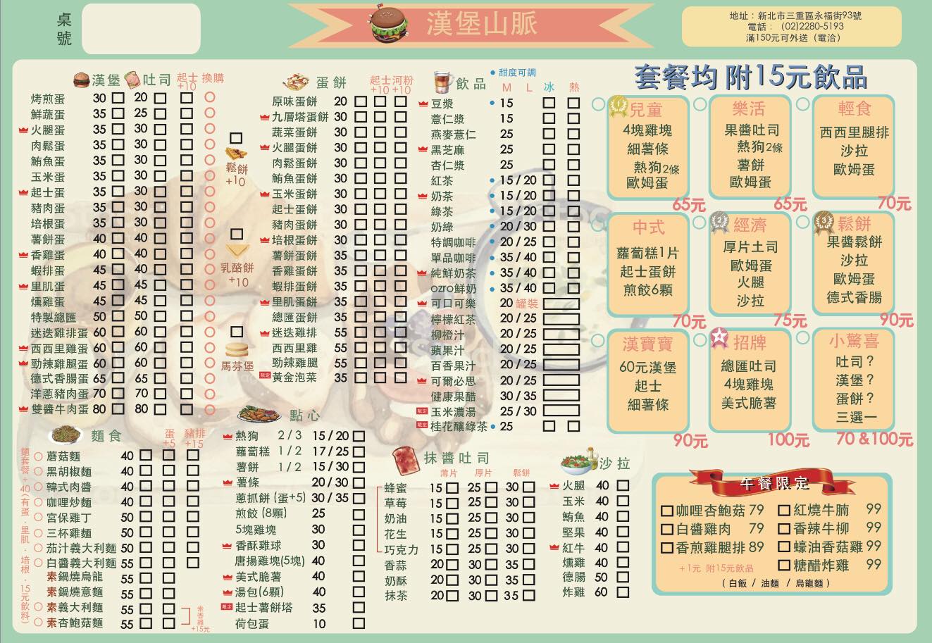 【漢堡山脈 風味館】提供美味、用心的中西式早餐,食材新鮮、品項豐富,讓來這裡享用早餐的朋友,都能與家人、好友享受一段美好的早晨時光!無論是招牌必點的漢堡、吐司或蛋餅,還是抹醬吐司及炸物點心,每一樣都飽足又美味,老闆用真心誠意製作的營養早餐,就等您光臨品嚐一番啦!♥