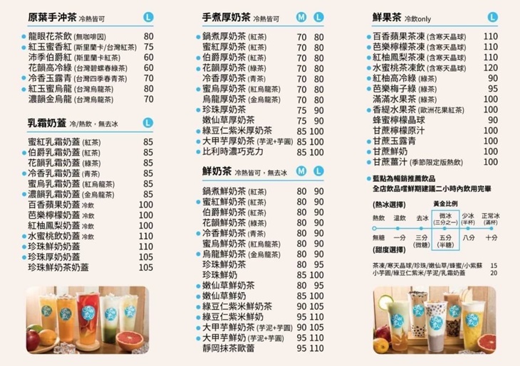 堅持選用新鮮上好的在地茶葉,搭配當日現煮的珍珠、茶凍、芋泥等,以及優質鮮乳融入其中,秉持著職人手作的精神,用心調製出一杯又一杯充滿溫度的手搖杯,打造自然純粹的絕妙風味、富饒層次的幸福滋味,絕不含任何人工添加物,讓人一喝就愛上,將給予味蕾至高無上的飲品饗宴!
