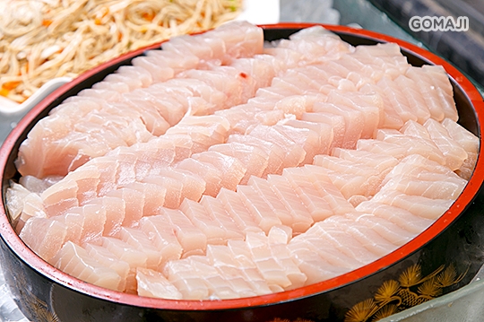 美麗生魚片彷彿鋪上一層雪霜,晶瑩光澤、模樣迷人,魚肉油脂豐富、份量厚實,入口時沉浸軟滑鮮甜,彷彿遨遊於大海!