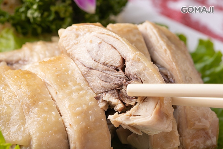 上選優質品種雞,油潤富有光澤的外皮,擁有真材實料、鮮嫩的肉質 ~ 取塊入口細嚐,皮嫩Q、肉滑香!搭配一旁主廚精心特製的油蔥淋醬,美味相輔相成,讓人吃過難忘!