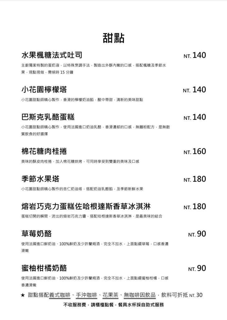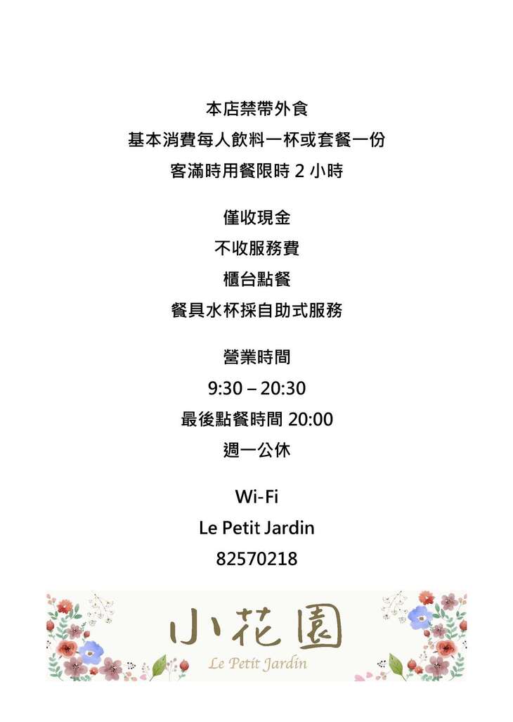 巷弄內的秘密花園!鄰近捷運新埔站的【小花園 Le Petit Jardin】,提供輕食、甜點、花草茶、義式/手沖咖啡等多元品項,期盼能帶給客人溫馨溫暖的感覺!帶有歐式莊園鄉村風格的裝潢設計,以木質為基調,溫暖色澤與柔和燈光相映,不僅沉浸於店內微醺欲醉的慵懶氛圍,更感受著浪漫氣息,給您截然不同的用餐體驗 ~ 在這裡細細品味輕食,輕啜一口飲品,沉澱心靈,這裡會是您暫時逃離忙碌生活的秘密花園,一起來吃吃看吧!♥