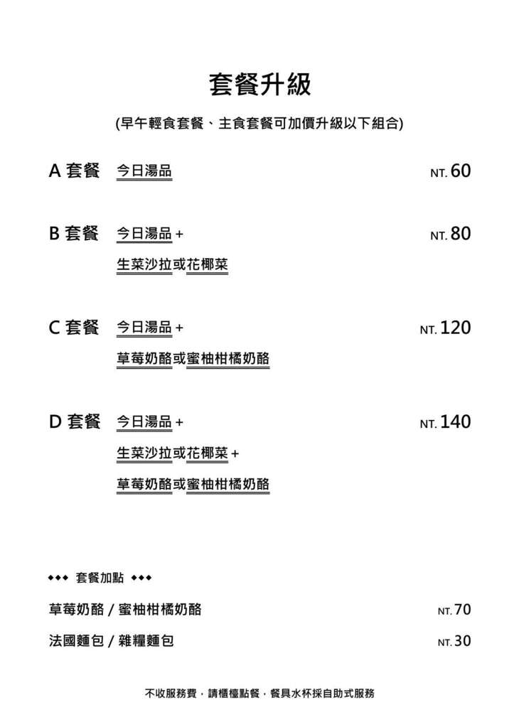 主廚獨家特製的蛋奶液,以特製烹調手法,製作出外酥內嫩的口感,搭配滑嫩炒蛋、橄欖油炒菇、火腿、水果生菜沙拉、優格,賣相及口感一百分,早午餐時光點上一份,讓您優雅品味,幸福一次到位!♥
