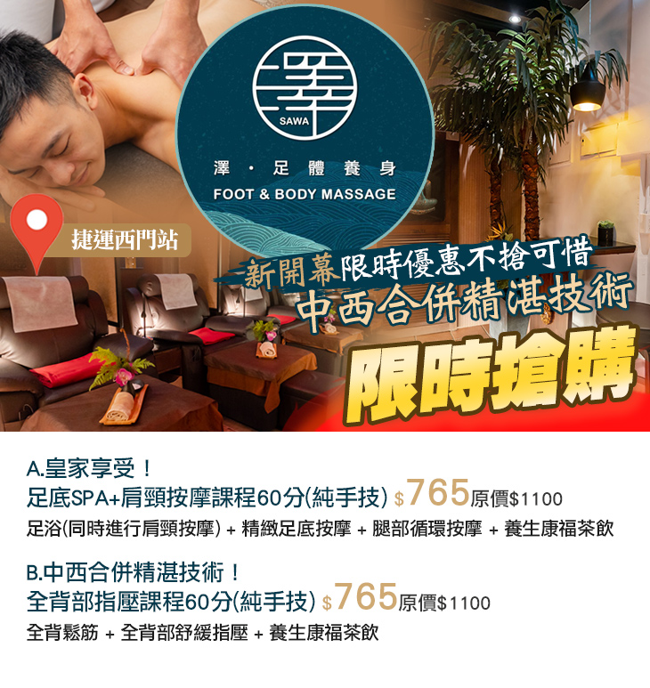 【SAWA澤足體養身館】感謝麻吉們熱烈搶購,已全數賣光光。