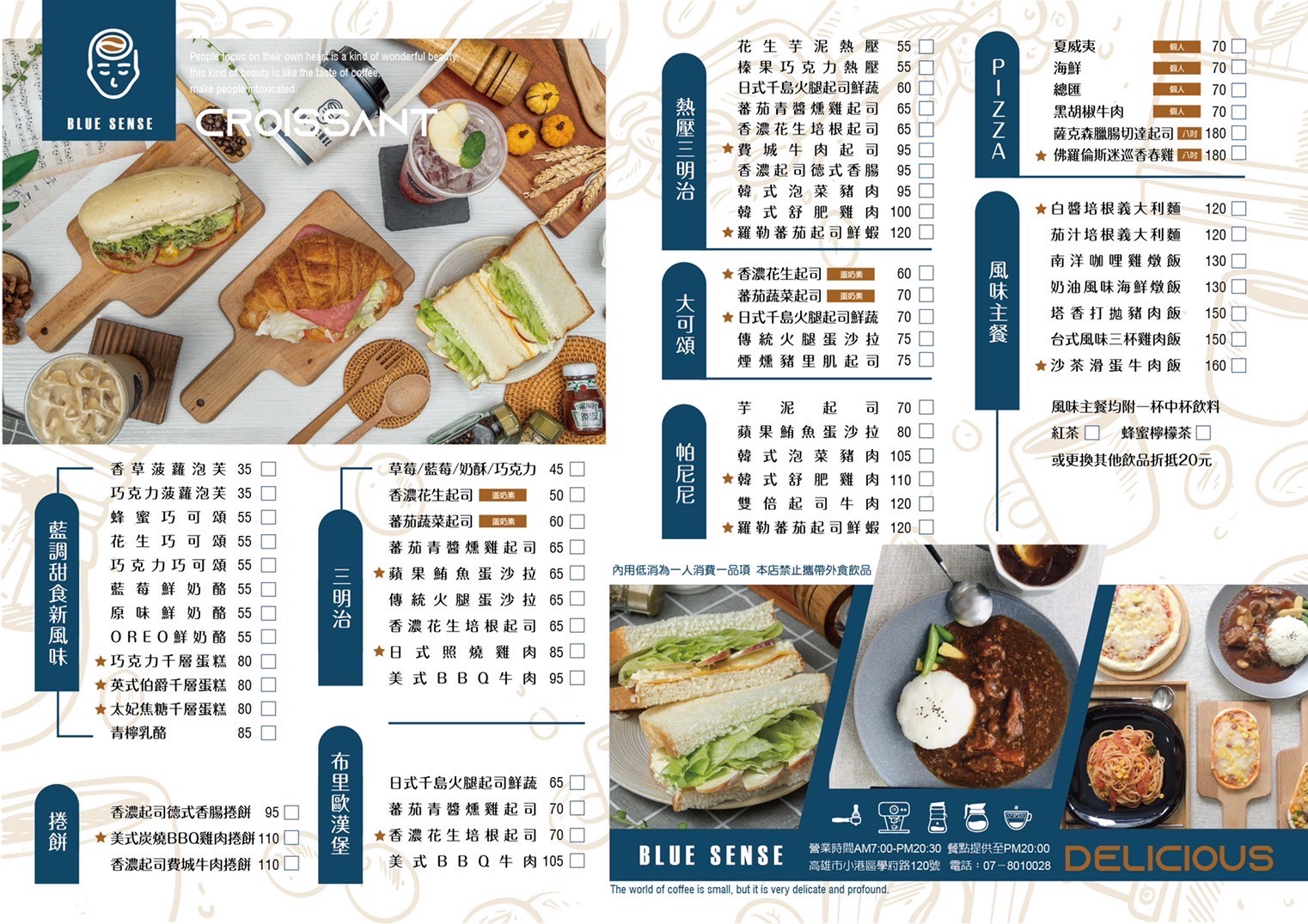 【藍調咖啡】專賣精緻的輕食、甜點及咖啡茶飲,選擇相當豐富,無論是獨自前來,或是相約朋友聊天吃美食,都非常合適!店內裝潢以充滿溫度的木質調搭配高雅灰色,規劃出簡約又不失質感的優美空間。運用大片的玻璃窗,讓自然採光灑落整個空間,翠綠的植栽則巧妙呈現靜謐的氛圍。在這裡您可以暢讀一本動人的文學,喝上一杯手沖咖啡,再點上一份療癒味蕾的輕食,暫時擺脫城市的繁忙,獨佔午後的閒暇逸致,就是生活裡最幸福的事情了!♥