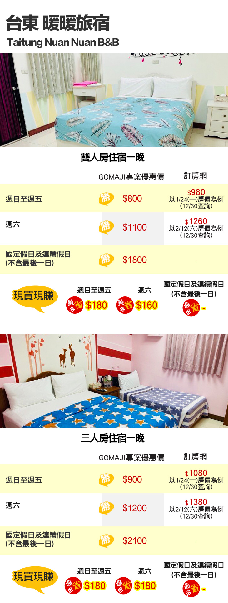 【台東-暖暖旅宿】感謝麻吉們熱烈搶購,已全數賣光光。