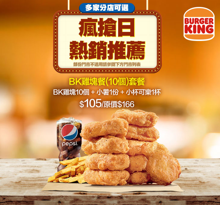 ➯超級品牌日,瘋搶日熱銷推薦!BK雞塊餐(10個)套餐