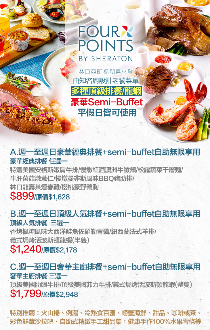 ★ C.週一至週日奢華主廚排餐+semi-buffet自助無限享用