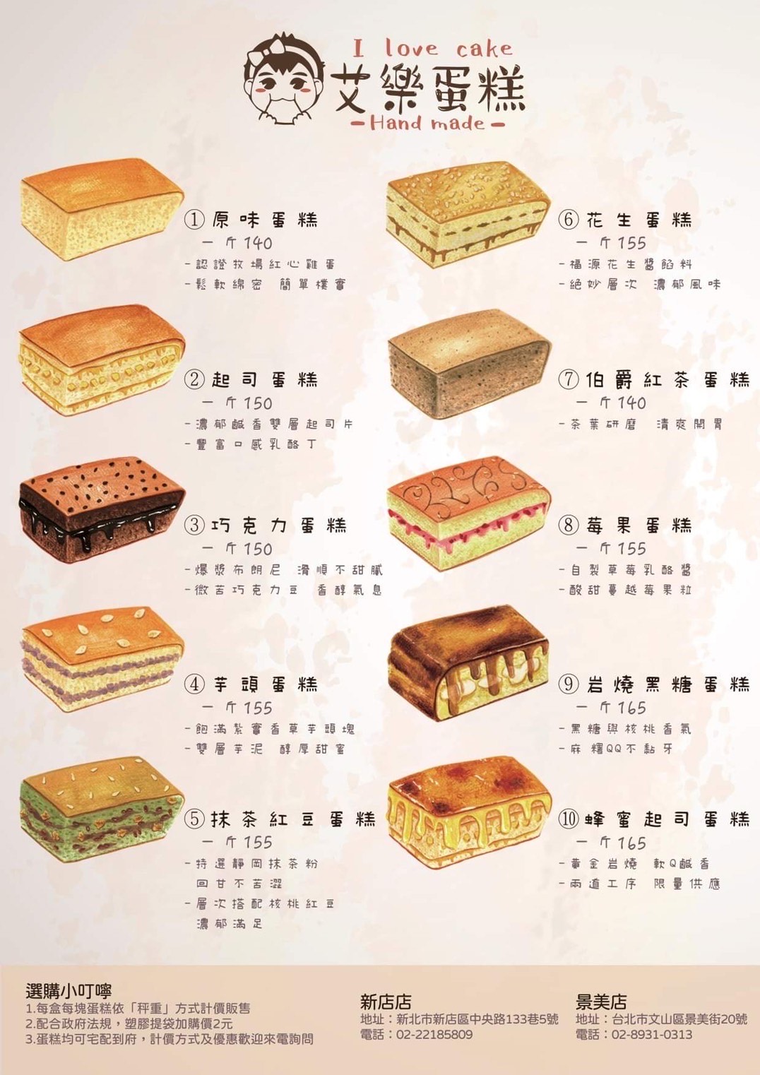選用天然純粹的原料與食材,融入匠心巧思、秉持著職人精神,堅持每日新鮮現做,過程中絕不添加任何人工色素、香精及防腐劑,打造層次豐富、風味多元的古早味蛋糕,質地細緻、餡料飽滿,無論當作早餐、下午茶或飯後甜點享用,都很適合!才剛開幕不久~就深受當地居民源源不絕的青睞與好評,征服了許多饕客們挑剔的味蕾,心動不如馬上行動,趕緊前來品嚐看看這家口碑超好的【艾樂蛋糕】吧!