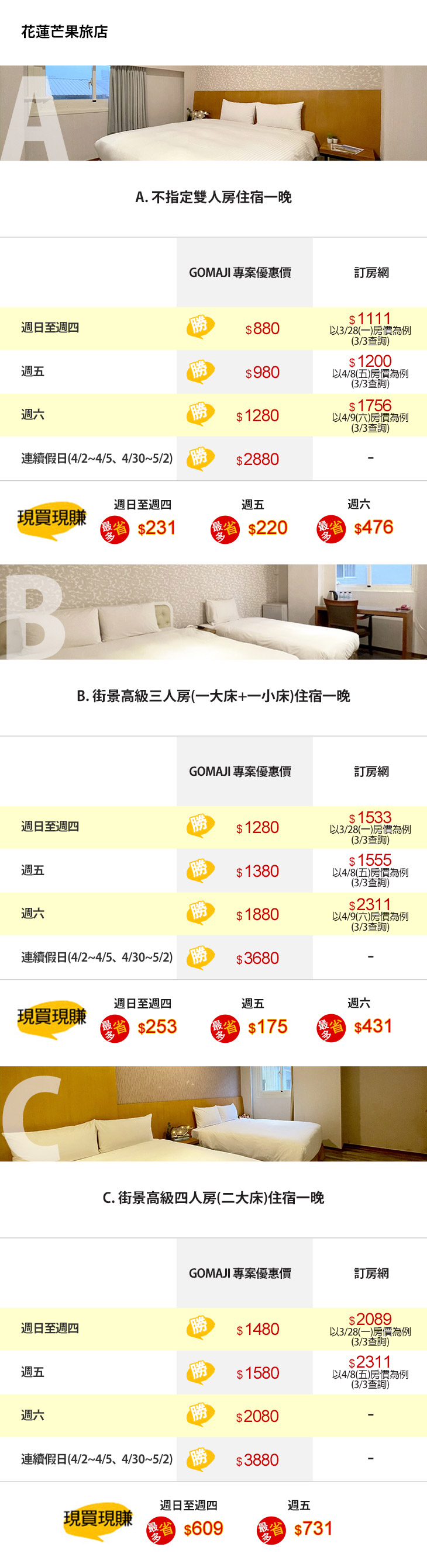 ※房型每間配置與設計格局不盡相同,依現場房況安排為主。