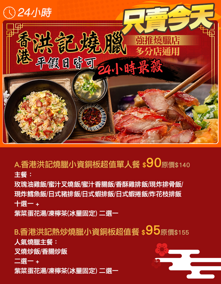 B.香港洪記熱炒燒臘小資銅板超值餐