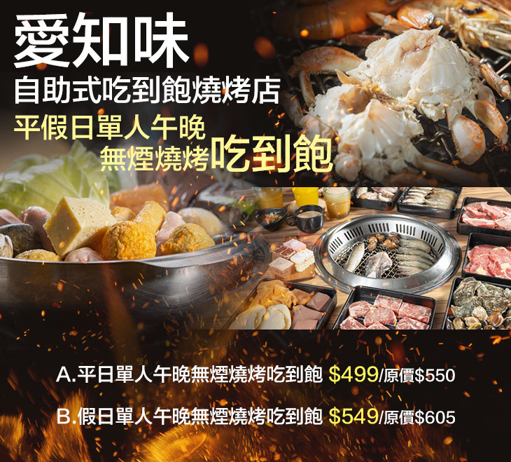 B.假日單人午晚無煙燒烤吃到飽