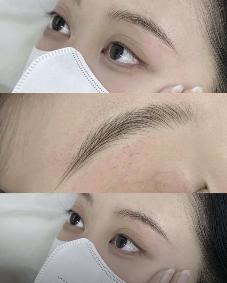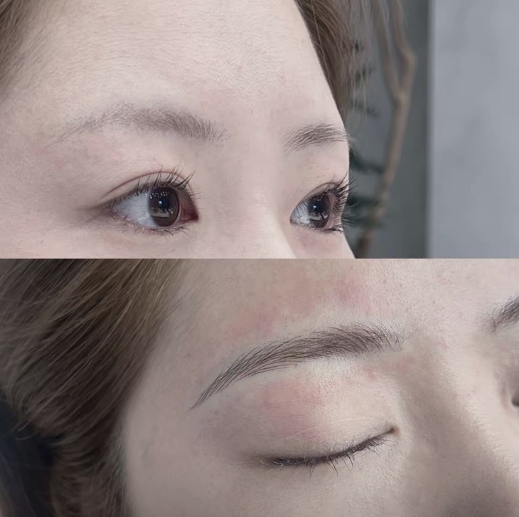 〈眉型設計溝通 + 客製化眉毛畫型 + 眉毛防敏測試 + 施作周圍肌膚殺菌清潔 + 器具酒精消毒 + 前置處理 + 眉型靜動態平衡檢測與定點確認 + 日式半永久霧眉上色定型 + 保養教學〉