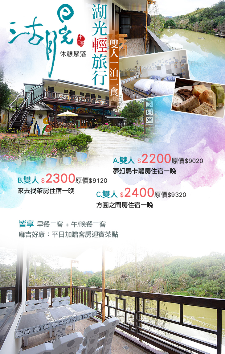 ★ 客房皆為原創藝術設計風格,通鋪也可加人使用,房間皆有陽台,與家人好友在湖光山色景致下聊天話家常。