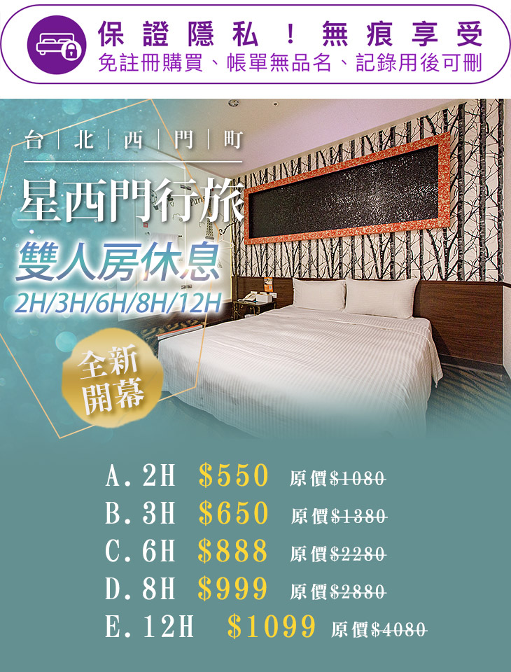 位於繁華熱鬧的西門町,擁有絕佳的地理位置與便捷的交通網絡,無論想要逛街、購物、看電影,或是品嚐在地美食等都能滿足您,【星西門行旅】提供親切熱情的服務品質,致力於打造令人感到自在、放鬆的休憩環境,讓每位遠道而來的旅客都能享受難得的悠閒時光,每分每秒都備感幸福!