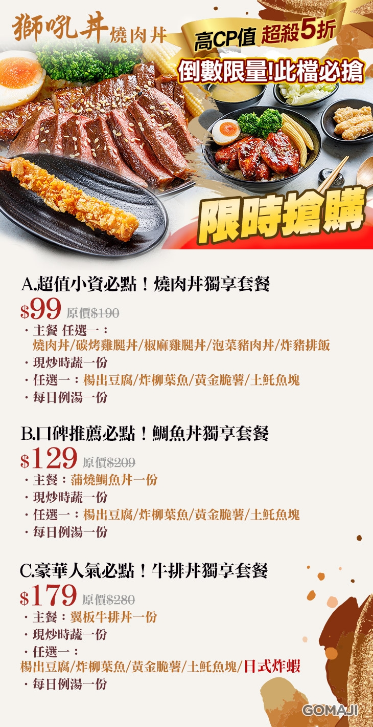 ❖ A.超值小資必點!燒肉丼獨享套餐