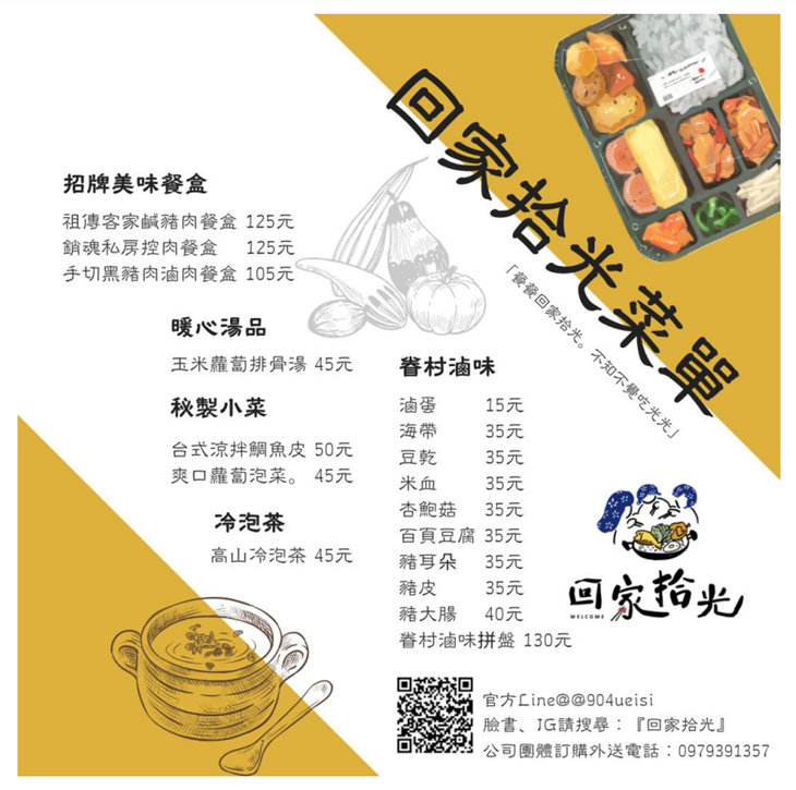 現代人生活繁忙,到外地工作的朋友也很多,想回家吃飯都需要特別將時間空下、工作排開,使得回家這兩個字變得遙遠,難免讓人感到遺憾。位於台中市西區的這間【回家拾光】,就是想給人們回家的感覺,用溫暖的心和好手藝,創造了充滿愛、有幸福感的食物。店內提供各式美味餐盒、滷味、小菜及湯品,食材新鮮、份量充足,希望每位吃到餐點的人都彷彿在家中餐桌上一般,感受那種溫暖、美味、家常與安心的感覺,這是【回家拾光】成立的初衷,老闆的用心您絕對感受得到!