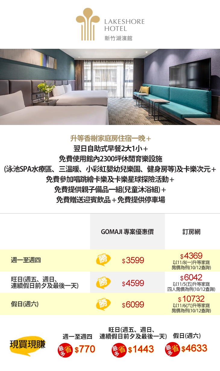 【煙波大飯店 新竹湖濱館】感謝麻吉們熱烈搶購,已全數賣光光。