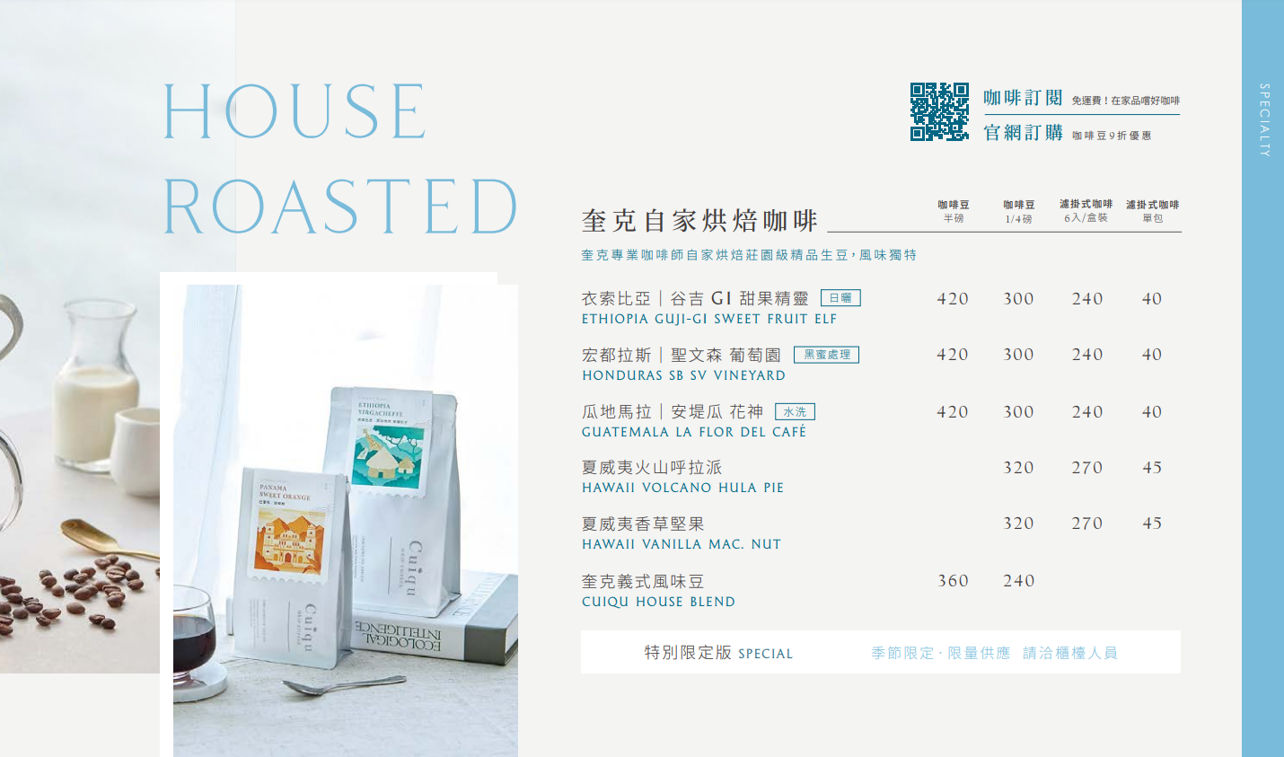 堅持選用頂級莊園咖啡生豆自家烘焙,