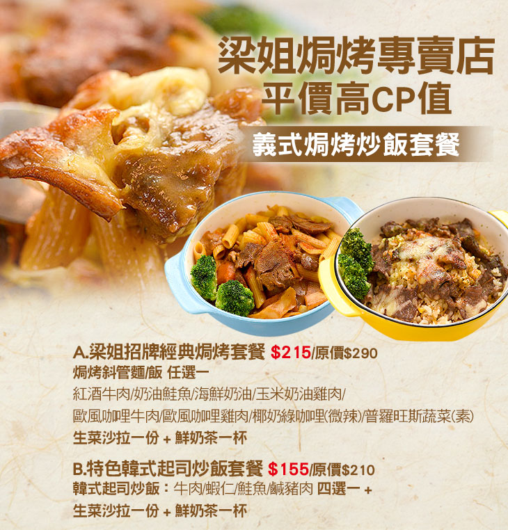 A.梁姐招牌經典焗烤套餐