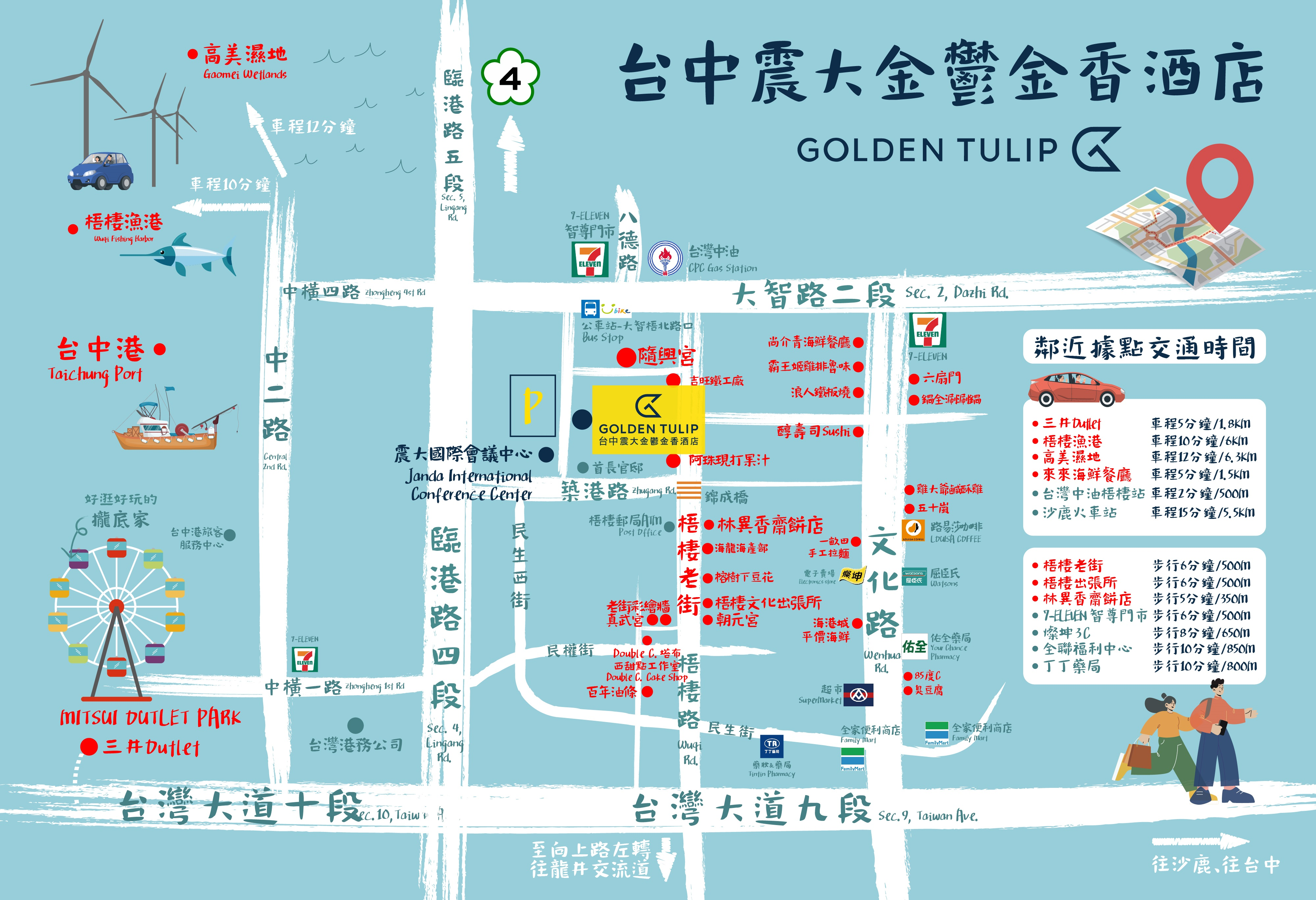 位於台中市梧棲區的震大金鬱金香酒店,座落在寬敞的土地上,擁有多種精心設計的客房。酒店的地理位置優越,周圍環境富含豐富的休閒景點,方便旅客盡情享受旅遊的樂趣~酒店內提供多種餐飲服務和設施,無論是旅遊的遊客還是商務出差的人士,都能在這裡找到舒適和便利。致力於提供高品質的服務,讓每位顧客都能在這個充滿愉悅氛圍的環境中度過愉快的時光!