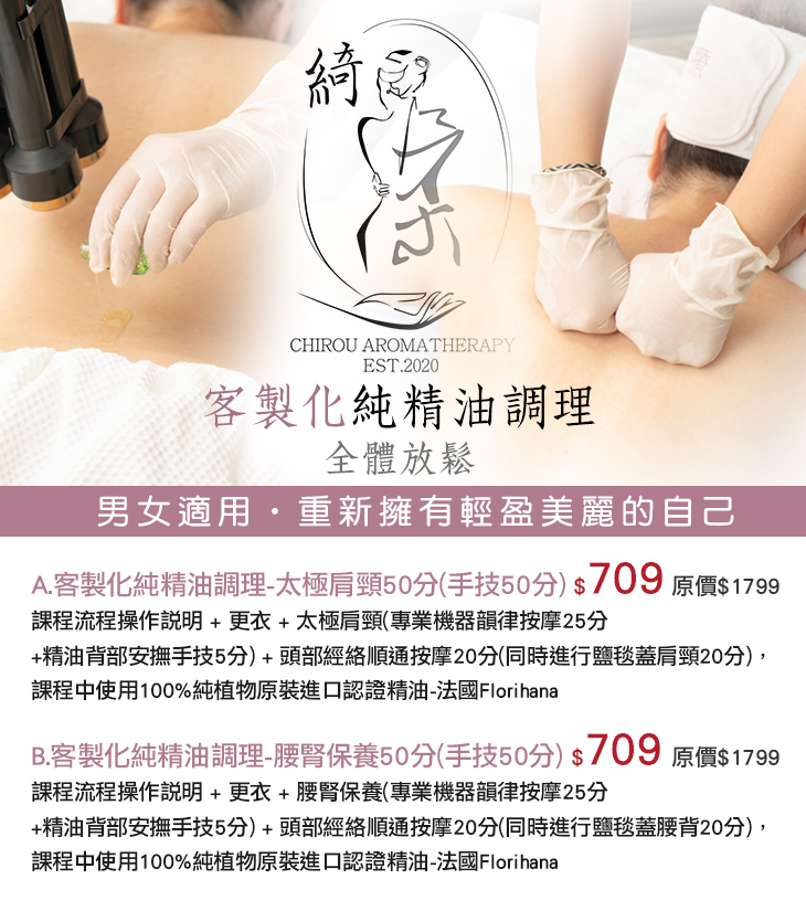 A.客製化純精油調理-太極肩頸50分(手技50分)