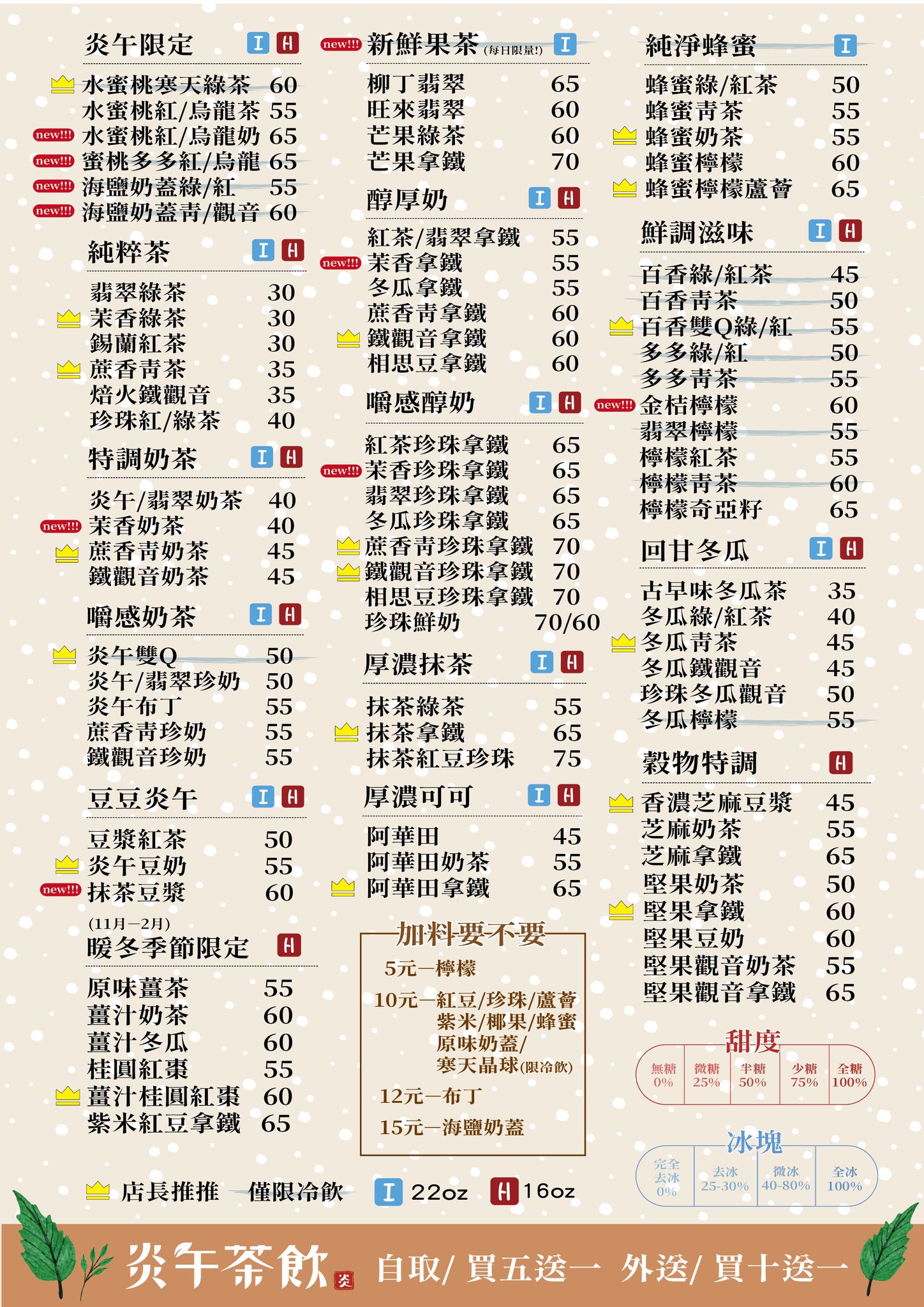 店面以溫潤的木調裝潢,給人一股輕鬆愜意的氛圍,在繁忙的路途上經過忍不住會多看幾眼。嚴格控管茶葉品質的【炎午茶飲Hsu Tea】,透過自身不斷研發、品茶的過程,用心製作出每一杯飲品,堅持給予客人最好的喝茶體驗,讓人感受到在炎炎夏日的午後,飲一杯好茶竟是如此的享受。
