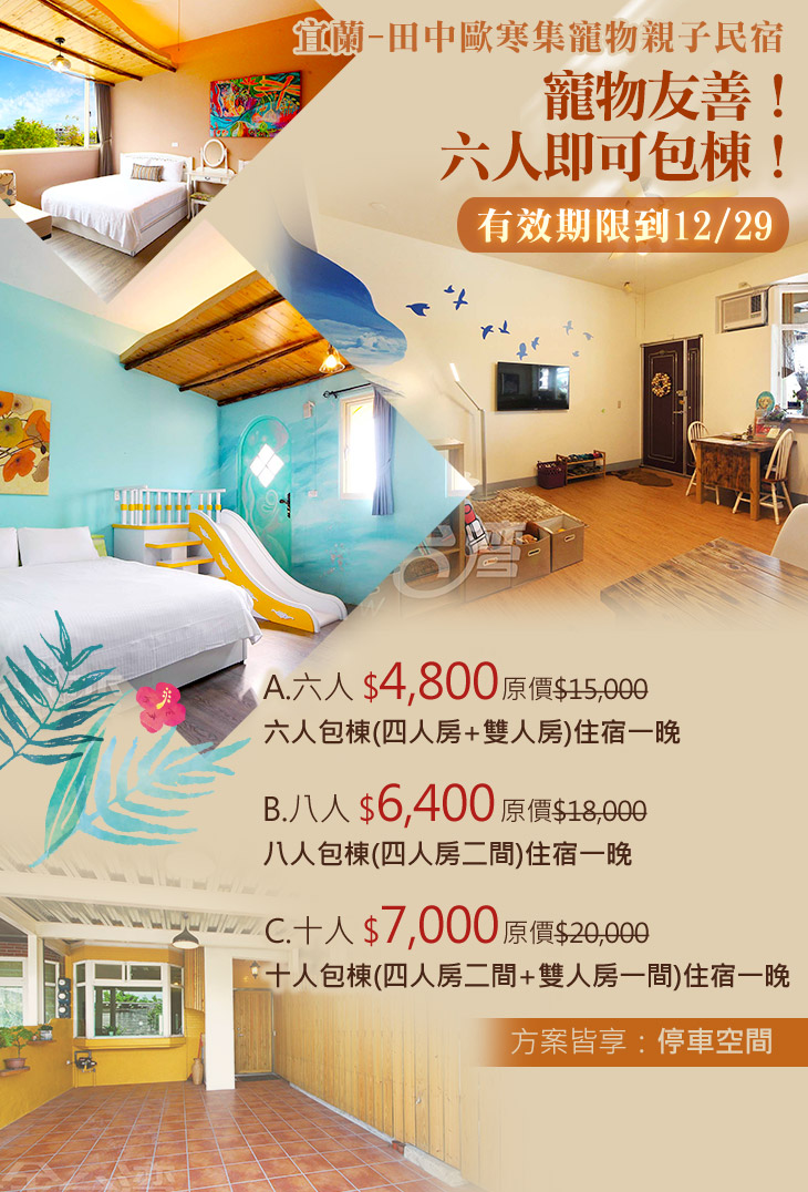 【宜蘭-田中歐寒集寵物親子民宿】感謝麻吉們熱烈搶購,已全數賣光光。