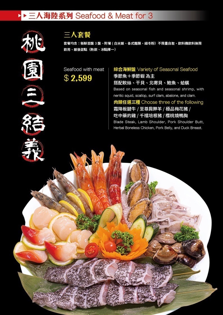 嚴選新鮮魚片、蝦子及蛤蠣等食材,入鍋簡單涮煮後,將其最鮮甜的滋味牢牢地鎖在肉裡,細細品嚐,細緻的肉質伴隨著豐盈鮮香,清爽又美味,一旁還有肉盤可享用,心動不如行動,懂得享受的您一定要嚐嚐!