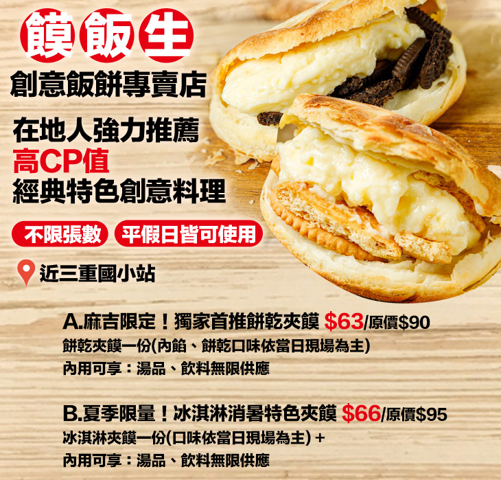 【A.麻吉限定!獨家首推餅乾夾饃一份】