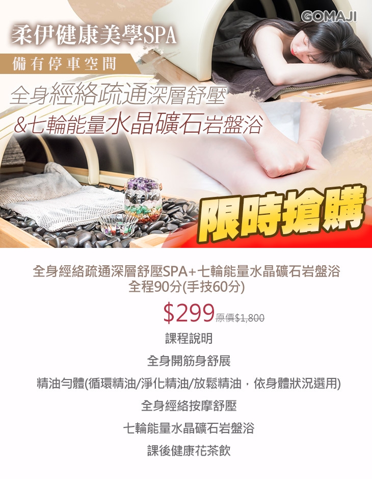 全身經絡疏通深層舒壓SPA+七輪能量水晶礦石岩盤浴全程90分(手技60分)