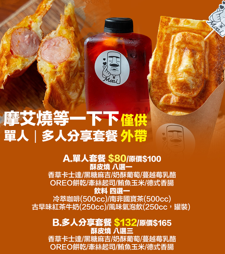 超級吸睛、療癒滿滿的銅板美食來啦~位於風光明媚的台中西區,充滿特色的餐車造型瞬間吸引過路客的目光,結合洋溢在空氣中的香甜氣息,強大的魅力征服全場,《摩艾燒等一下下》絕對會成為您午後時光的最佳夥伴!