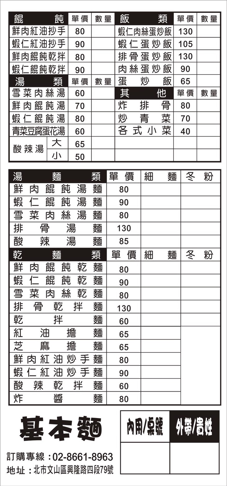 ◆ 基本麵食館
