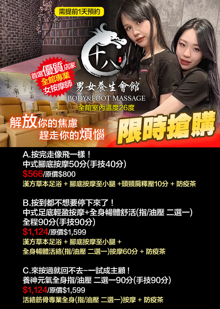 【十八男女養生會館(中山店)】感謝麻吉們熱烈搶購,已全數賣光光。