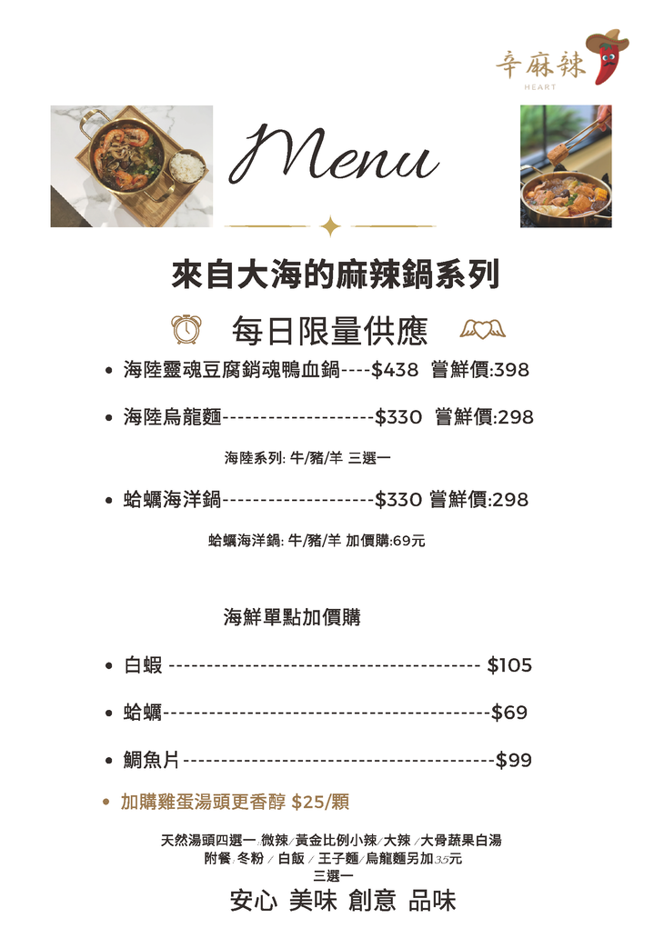 重視健康、美味、創意及品味的新型態餐廳《辛麻辣》正式登場~隱藏在新竹縣的竹北市,揮別以往對麻辣鍋物的經營模式,創造全新的視覺、味覺饗宴,期許藉由美食以豐富每位顧客的生活品味,現在就跟著我們的腳步一同前往,踏上一邊吃著鍋物、一邊探索日常美好的奇幻之旅吧!