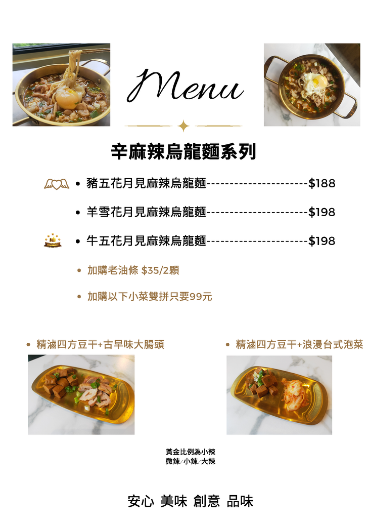 選用天然食材、結合清爽調味,經由主廚的精湛手藝,使整道鍋物既能復刻麻辣鍋的精髓、又能維持健康煮食的概念,細細品嚐,湯頭濃郁爽口、不鹹不膩,伴隨著微辣的滋味,鼻間盡是繚繞不絕的香氣,與勁道的烏龍麵、肥嫩的豬五花形成絕妙的新鮮口感,保證讓您愛不釋口、意猶未盡!