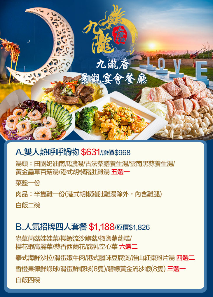 【九瀧唐景觀宴會餐廳】感謝麻吉們熱烈搶購,已全數賣光光。