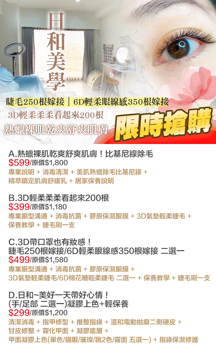 C.3D帶口罩也有妝感!睫毛250根嫁接/6D輕柔眼線感350根嫁接 二選一
