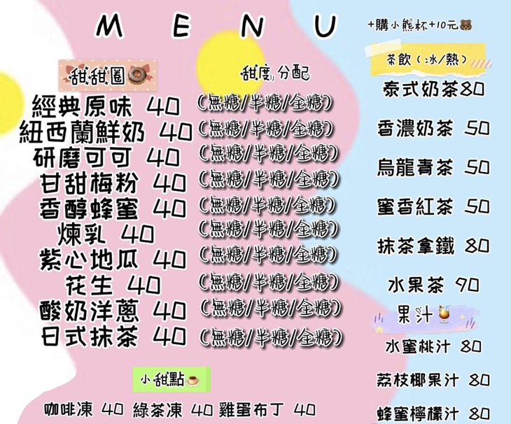 一入口便能感受到爆棚的可可風味!只要一口便知道店家真材實料,您也將被那香濃的滋味擄獲味蕾!而且您不必擔心太過死甜喔!店家將依您的口味調製糖分,完全不怕吃到最後太有罪惡感,這裡的甜甜圈將讓您從第一口享受到最後一口!
