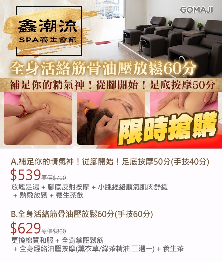 【鑫潮流SPA養生會館】感謝麻吉們熱烈搶購,已全數賣光光。