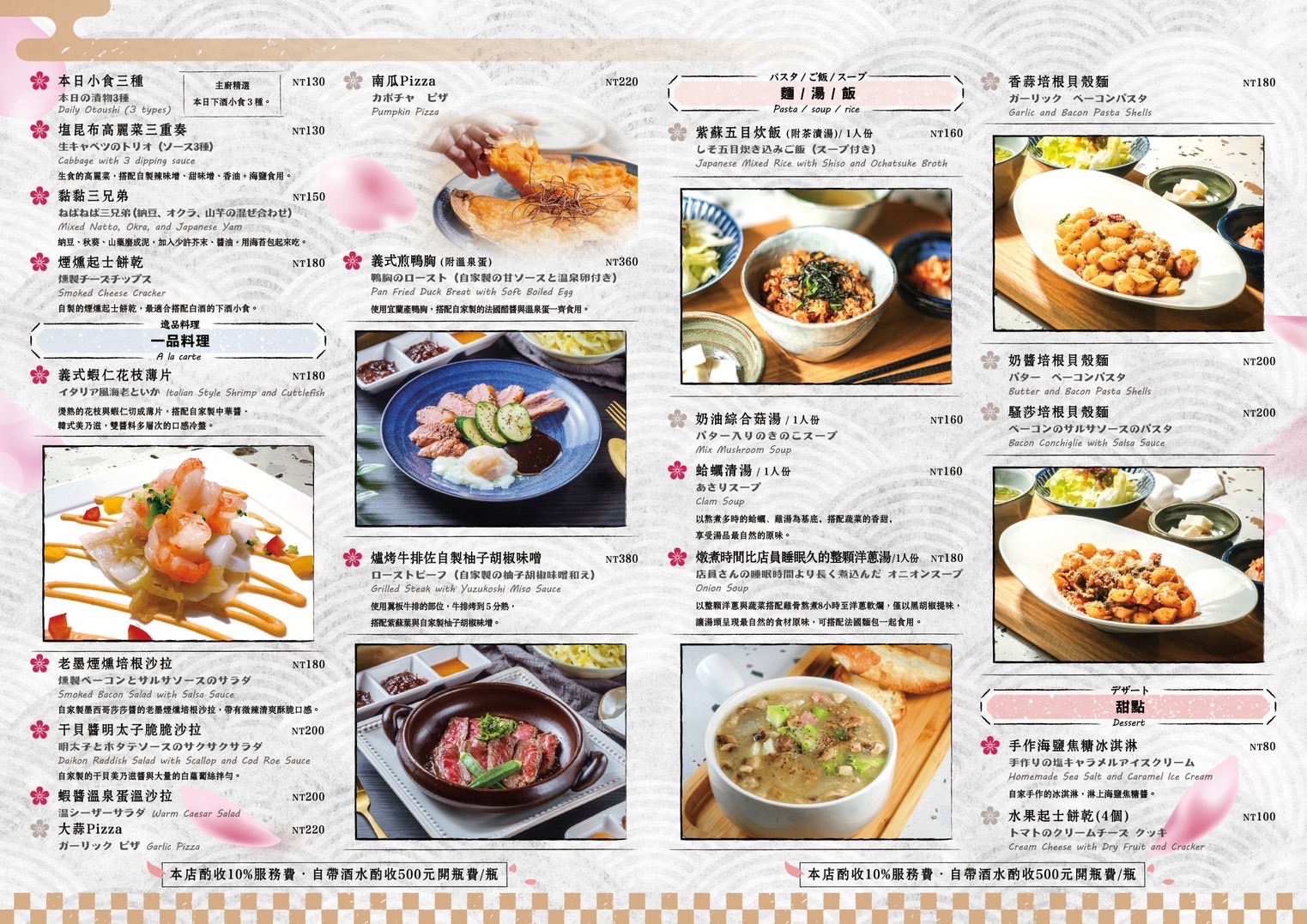 ※菜色內容依季節時令調整,實際菜色、價目依現場提供為主。