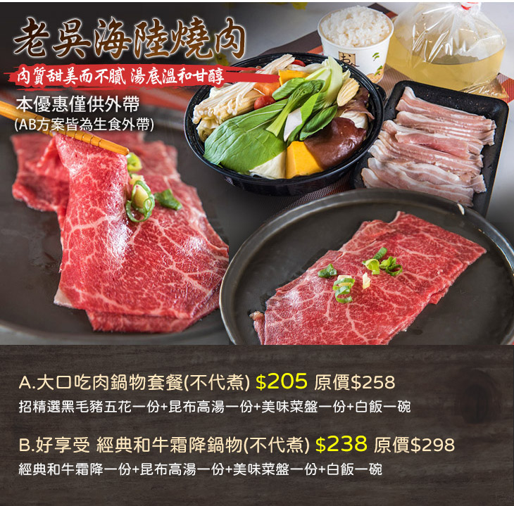 A.大口吃肉鍋物套餐(不代煮)