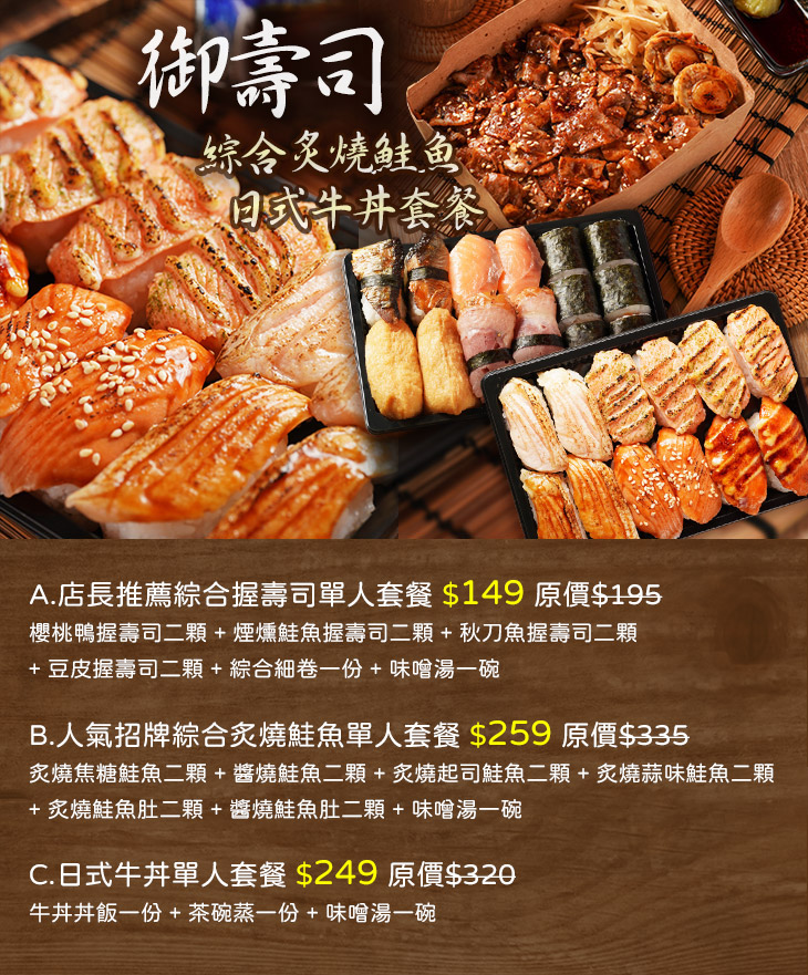 B.人氣招牌綜合炙燒鮭魚單人套餐