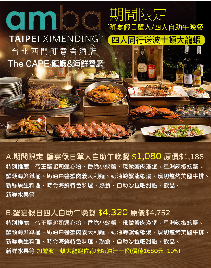 【台北西門町意舍酒店-The CAPE 龍蝦&海鮮餐廳】感謝麻吉們熱烈搶購,已全數賣光光。