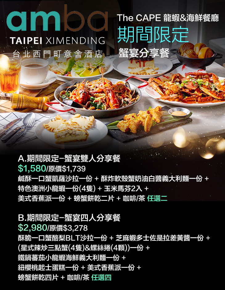 【台北西門町意舍酒店-The CAPE 龍蝦&海鮮餐廳】感謝麻吉們熱烈搶購,已全數賣光光。