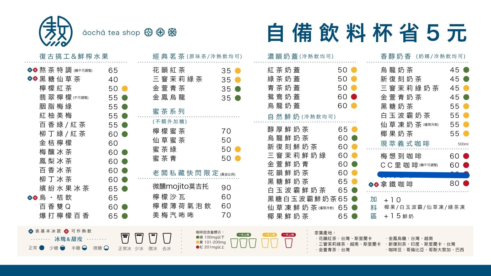 獨具特色的大人系飲品就在這!所有物料皆為親自熬煮,包含糖水、烏梅汁、果汁都經過慢火熬煮、精心淬鍊,追求的是味道的極致!因此店家對於茶葉、水果的挑選和煮製過程非常講究,希望呈現出經得起考驗的原味感動。在這裡,您可以品嚐到純正而濃郁的茶香,感受到獨特的口感和迷人的茶味。無論是對於茶飲品味有著高要求的茶葉愛好者,還是追求品質和細膩的茶飲體驗者,都能為您帶來一場純粹、滿足的茶飲享受。