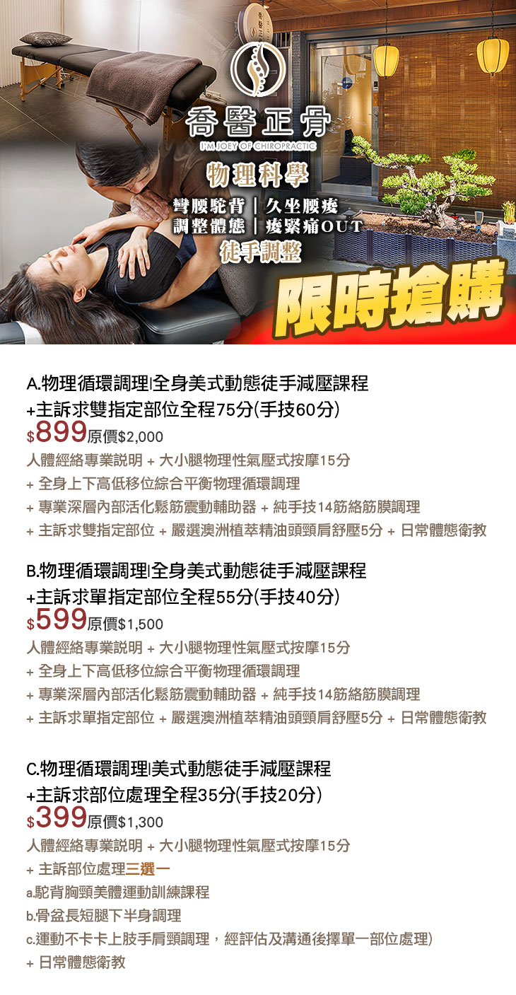 B.物理循環調理|全身美式動態徒手減壓課程+主訴求單指定部位全程55分(手技40分)